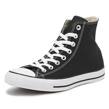 Show moreIntroducing the world-renowned Converse Chuck Taylor All Star High Black shoes—your ultimate companion for style and comfort. With a classic black canvas upper, these shoes epitomize versatility, fitting effortlessly into your everyday wardrobe. The unique design features a rounded toe box, which provides ample space for your toes to spread out naturally, ensuring that you never have to compromise on comfort. Customers appreciate the consistent sizing; whether you’re a women’s size 9 to 9.5, ordering a men’s size 7 guarantees an impeccable fit. And not only do they arrive on time and in perfect condition, but their bright white accents stand out beautifully against the black canvas.