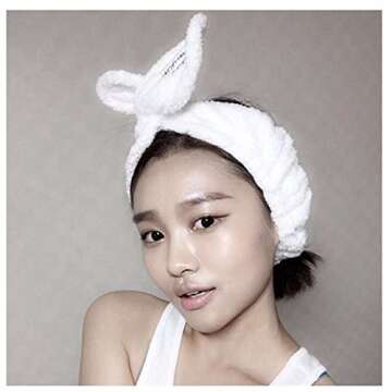 Coobbar 1Pc Cute Big Rabbit Ear Soft Towel Hair Women Girl Band Wrap Headband for Bath Spa Make Up (Gray)