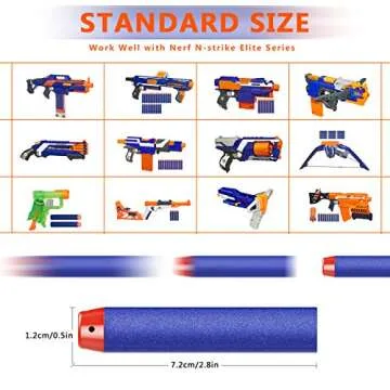 Introducing the ultimate foam dart pack that guarantees hours of fun for kids and adults alike! Crafted by a renowned brand dedicated to quality and safety, this mega-pack of foam darts is compatible with all N-Strike Elite blasters, making it the perfect addition to any Nerf arsenal. Each dart measures 7.2 x 1.2cm (2.84in*0.51in) and is designed to provide exceptional flight stability ensuring they fly straight and true.