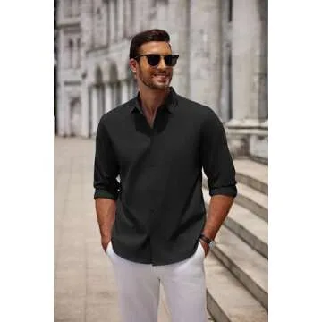 Show more Introducing the COOFANDY Men's Casual Long Sleeve Button Down Shirt, meticulously crafted from high-quality plain weave cotton fabric. This shirt strikes the perfect balance between comfort and style, designed to ensure maximum breathability and softness for all-day wear. The cool, sweat-absorbent material prevents skin irritation, making it an ideal choice for both casual and formal occasions. Its lightweight chambray design is a wardrobe must-have, promising a comfortable fit that allows ease of movement.