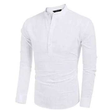 COOFANDY Men Premium Henley Neck Linen Shirts Casual Long Sleeve Basic Shirts,White,Large, White, Large