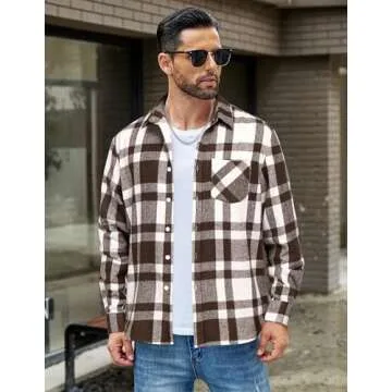 COOFANDY Men's Casual Button Down Shirts Long Sleeve Flannel Shirts Untucked Wedding Shirts