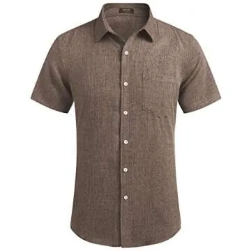 COOFANDY Men's Casual Linen Button Down Shirt Short Sleeve Beach Shirt Brown