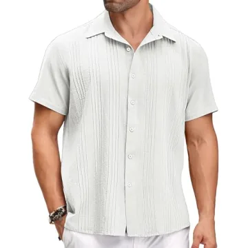 Show moreExperience summer in style with the **COOFANDY Men's Cuban Linen Shirt Short Sleeve Summer Beach Guayabera Shirt**. Crafted from a premium cotton-linen blend, this shirt is designed to keep you feeling airy and fresh during warm weather. The breathable material wicks away moisture, making it your go-to shirt for sweltering summer days. Available in a gorgeous array of colors including Black, Clear Blue, Grey, Navy Blue, and White, this shirt features intricate pleat details that not only elevate its aesthetic but also provide a distinctly casual, sophisticated charm perfect for beach outings or casual gatherings.