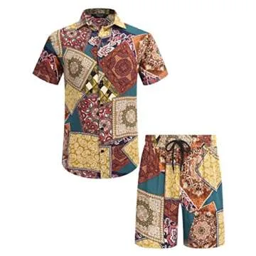 COOFANDY Men's Hawaiian Shirt Beach Vacation Button Up Flower Printed Shirt Summer Two Piece Outfits Fashion Set for Men