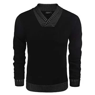 Show moreIntroducing the COOFANDY Men's Knitted Sweaters Casual V-Neck Slim Fit Pullover Knitwear, a versatile and stylish addition to any man's wardrobe. Crafted with a ribbed shawl collar and made from a lightweight, soft fabric, this sweater dress ensures both comfort and functionality. Perfectly designed to fit snugly, it accentuates your physique without compromising on ease of wear, making it an ideal choice for numerous occasions. The classic black color lends itself well to mixing and matching, whether you’re headed for a casual outing or a relaxed work environment.