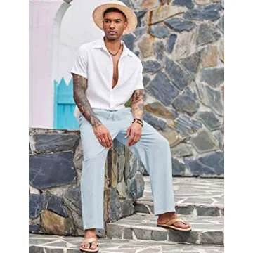COOFANDY Men's Linen Casual Pants Summer Spring Beach Jog Elastic Waist Trousers A- Sky Blue