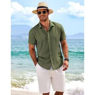Stylish COOFANDY Men's Linen Shirt - Perfect for Summer Beach Wear