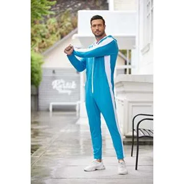 COOFANDY Men's One Piece Tracksuit Hooded Jogging Jumpsuit Long Playsuit with Pockets Blue XL