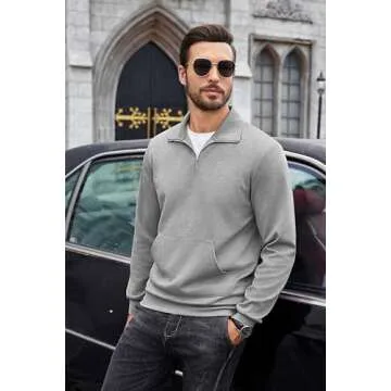 COOFANDY Men's Quarter Zip Sweaters Slim Fit Lightweight Mock Neck Pullover Casual Polo Sweaters Long Sleeve Pullover Grey