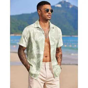 COOFANDY Men's Short Sleeve Button Up Shirts Wrinkle Free Hawaiian Shirts for Men