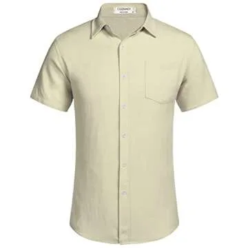 COOFANDY Men's Summer Casual Shirt Button Up Basic Solid Linen Business Shirts
