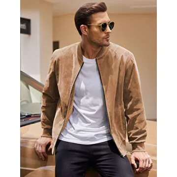 COOFANDY Men's Varsity Baseball Jacket Causal Slim Fit Suede Leather Bomber Jackets