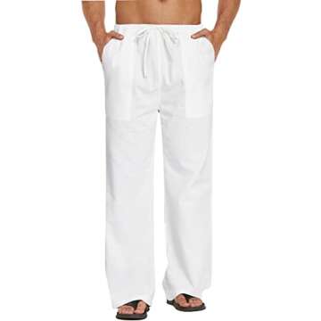 COOFANDY Mens Linen Cotton Loose Casual Lightweight Elastic Waist Straight Pants