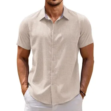 Show moreIntroducing the **COOFANDY Mens Linen Shirt**, the perfect addition to your summer wardrobe. This stylish short sleeve button-down shirt combines elegance and comfort, crafted from premium, lightweight fabric that feels soft against the skin. Its breathable design ensures you stay cool, making it ideal for beach outings, casual gatherings, or a laid-back evening with friends. The casual yet sophisticated plaid collar adds a touch of uniqueness and flair, distinguishing it from standard shirts. Whether paired with shorts, jeans, or linen pants, this versatile shirt guarantees a handsome and polished look for any occasion.