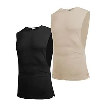 COOFANDY Mens Workout Mucsle T 2 Pack Gym Tank top Bodybuilding Fitness T Shirt Black/Light Khaki(2pcs) Medium Sleeveless
