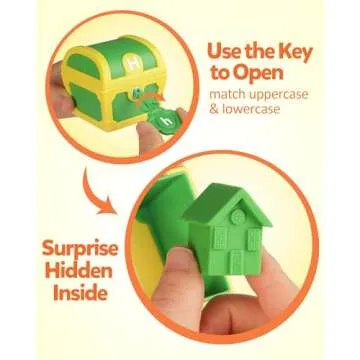Show more Introducing the enchanting Alphabet Treasure Hunt Game, a delightful and educational experience designed to captivate young minds! This exciting game features 26 uniquely designed keys and corresponding treasure boxes, each representing a letter of the alphabet. Children will embark on a thrilling quest as they match the perfect key to unlock treasure chests filled with surprises, ranging from stuffed animals to everyday items, enriching their vocabulary while having endless fun.