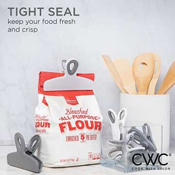 COOK WITH COLOR Bag Clips - Heavy Duty Chip Clip and Refrigerator Magnet Clips for Food Storage with Air Tight Seal Grip, Grey Ombre, Pack of 8