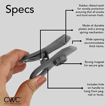 COOK WITH COLOR Bag Clips with Magnet - Chip Clips, Food Storage with Airtight Seal Grip for Bread, Snack and Food Bags (Grey Ombre, Pack of 10)
