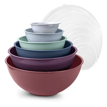 COOK WITH COLOR Mixing Bowls with Lids - 12 Piece Plastic Nesting Bowls Set includes 6 Prep Bowls and 6 Lids, Microwave Safe Mixing Bowl Set (Multicolored Set with Large Blush Bowl)