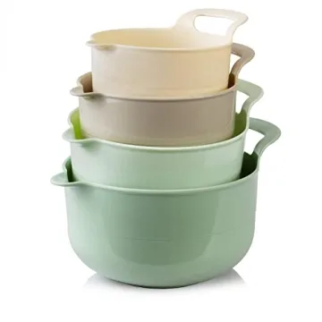 Show moreIntroducing the Cook with Color Nesting Plastic Mixing Bowl Set, a vibrant 4-piece collection designed to elevate your cooking and baking experience! This remarkable set combines function with flair, featuring a chic ombre mint design that will add a pop of color to your kitchen. Each bowl in this set comes equipped with non-slip bases, pour spouts, and comfortable handles, making it easy to mix, pour, and handle your ingredients with confidence. Plus, these durable bowls are made from high-quality, food-safe materials that are entirely BPA-free, ensuring safety and peace of mind as you create your favorite recipes.