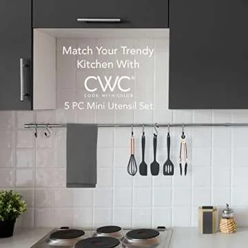 COOK WITH COLOR Silicone Cooking Utensils, Kitchen Utensil Set, Easy to Clean Silicone Kitchen Utensils, Cooking Utensils for Nonstick Cookware, Kitchen Gadgets Set, Mini, Black