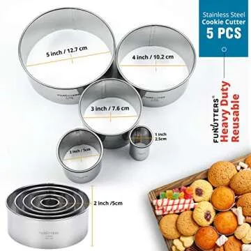 Cookie Cutter Set, 5 Pc. Kit, Measuring 1'', 2'', 3'', 4'' and 5'', Round Metal Baking Rings for Pastry, Biscuits, and Dough Cutting, Heavy Duty and Reusable, Multiple Sizes