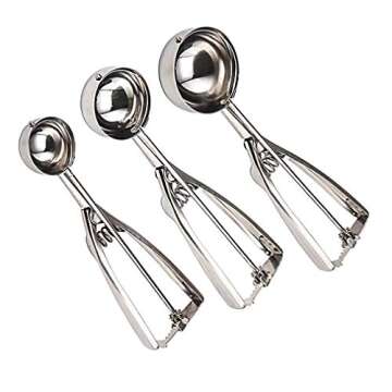 Cookie Scoop Set of 3 - Stainless Steel Ice Cream Scooper with Trigger, Small, Medium and Large Cookie Scoops for Baking, Easy to Clean, Highly Durable, Ergonomic Handle Cookie Dough Scoop