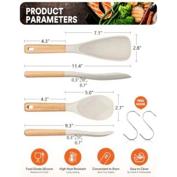 Cooking Spoon and Rice Scooper for Nonstick Cookwares, Great for Cooking and Serving Durable BPA-Free Matte Silicone, Wood Handle Spoon for Mixing, Scoop, and Scrape (KHAKI)