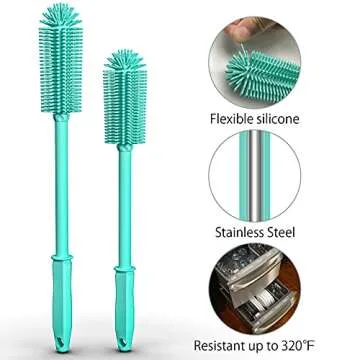 Show moreIntroducing the COOKLEE Silicone Bottle Cleaning Brush – the ultimate cleaning aid designed specifically for all your narrow-neck containers, including Hydro Flask bottles, glassware, and sport vacuum bottles. This robust 2-pack of 16-inch long brushes offers an innovative solution to tackle stubborn grime and dirt, ensuring every corner and crevice of your favorite bottles and vases is scrubbed clean. Constructed from high-quality, food-grade silicone, these bottles brushes repel odors and stains, making them a healthier alternative to traditional sponge and nylon brushes.
