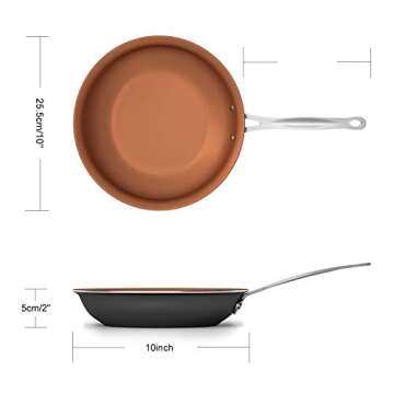 Show more If you're on the hunt for the ultimate cooking companion, look no further than this exceptional 12-inch copper non-stick frying pan. Crafted with a high-quality triple-layer interior, this innovative pan promises durability and scratch-resistance, ensuring your culinary adventures are often worry-free. The premium nonstick coating reduces the need for excess oil or butter, allowing you to enjoy healthier cooking while maintaining flavor.