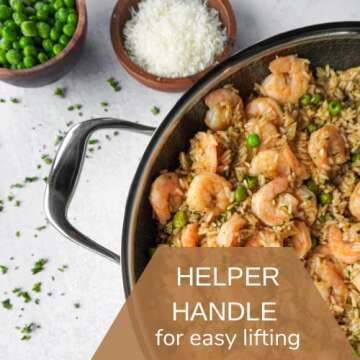 Introducing the exquisite Cooksy 12 Inch Hexagon Surface Hybrid Stainless Steel Frying Pan with Lid, a culinary masterpiece crafted for those who elevate their cooking experience. Designed by the trusted and innovative Cooksy brand, this frying pan beautifully combines the best elements of high-end non-stick technology with temperature performance. Its unique hybrid surface features a stainless steel hexagon pattern that not only enhances flavor but also protects the non-stick coating for...