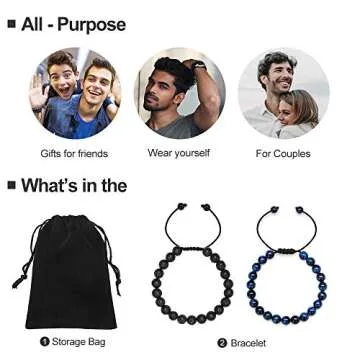 Show moreThis exquisite Cool Gifts for Mens and Women's Bracelet blends elegance and spirituality into one stunning accessory. Crafted from high-quality natural tiger eye and black matte agate stones, this bracelet is not only stylish, but also designed to meet the diverse needs of today's modern individuals. Its adjustable cord allows for an inner length ranging from 6 to 12 inches, making it a perfect fit for all wrist sizes. The bracelet's durable construction ensures it withstands daily wear, allowing you to flaunt this charming piece on various occasions.