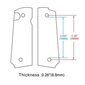 Installation is a breeze! Each set comes complete with 4 screws, 4 o-rings, and a T10 Torx key for easy setup. Notably, the grips fit most 1911 Full Size models, including Government and Commander versions, which means you can enjoy a custom fit without the hassle of complicated adjustments. The precise measurements between the center holes at 3 1/16" and a thickness of 1/4" ensure compatibility, enhancing the overall functionality of your firearm.