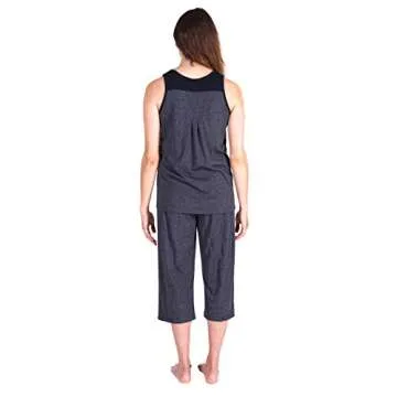 Cool-jams Sleep Tank Top Pajama Set for Women - Moisture Wicking Pajama Tops & Capri Pants - Midnight M