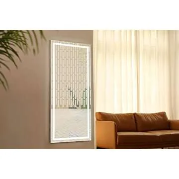 COOL2DAY Full Length Dressing LED Mirror Large Rectangle Dimmable Floor Mirror Wall Mirror,Waterproof Mirror for Bedroom Bathroom and Living Room (47"x 22")