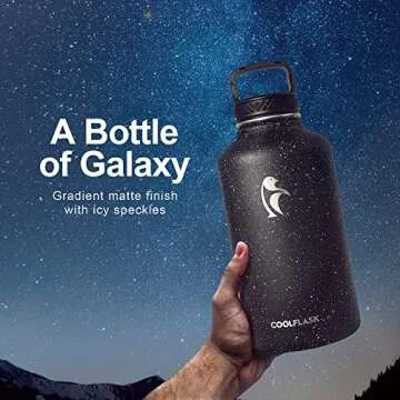 Show more Introducing the Coolflask 64 oz Insulated Water Bottle—a perfect companion for anyone looking to stay hydrated in style. Designed with a stunning gradient powder coat and unique ice speckles, this water bottle is not just visually appealing but also incredibly functional. Its generous 64 oz capacity ensures you'll have enough water for an entire day, whether you're hitting the gym, working at the office, or enjoying a day outdoors.