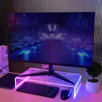 CoolGift Mart Light Up Monitor Stand Riser, Acrylic Computer Stand with PCB Pattern Blue Pink LED Lights for Desktop Laptop, Gifts for Boys Girls Gamers