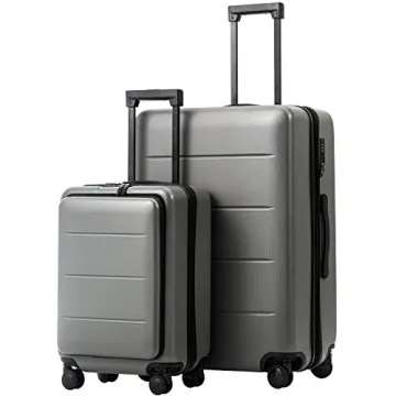 COOLIFE Luggage Suitcase Piece Set Carry On ABS+PC Spinner Trolley with pocket Compartmnet Weekend Bag(Titanium gray, 2-piece Set)