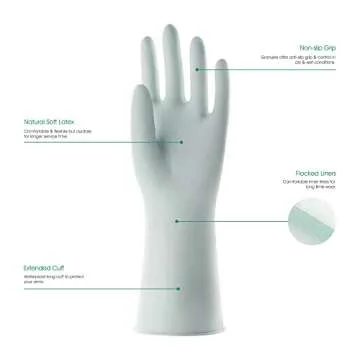 COOLJOB Medium Reusable Rubber Dishwashing Cleaning Gloves for Kitchen Bathroom, Non-Slip Grippy Long Dish Washing Gloves with Flocked Cotton Liner, Flexible Durable & Waterproof, Mint Green, 1 Pair