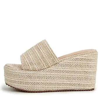 COOLLULU Womens Espadrille Platform Wedges Heel Sandals Open Toe Slides Bohemia Sandals Beige US 6