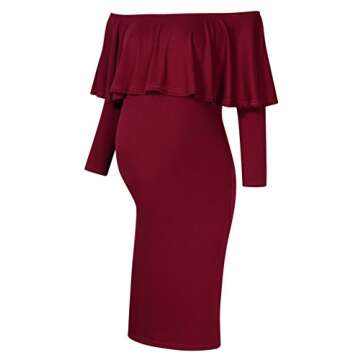 Coolmee Women's Off Shoulder Maternity Dress - Casual Maxi, Burgund