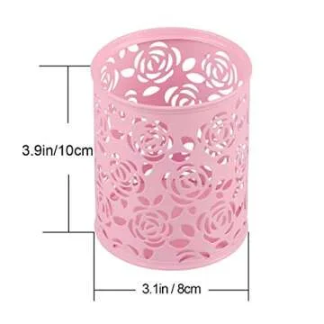 Show moreIntroducing the Coolrunner Metal Rose Flower Hollow Pen Pencil Pot, a stylish and functional addition to your workspace or vanity. Crafted from high-quality metal, this elegant cylinder container is designed to keep your desktop organized while adding a touch of beauty to any setting. With its stunning pink color and detailed rose flower design, this pencil pot not only serves as a practical storage solution for your stationery but also enhances the aesthetic appeal of your desk or makeup area. Measuring at a height of 10cm (3.95 inches) and a diameter of 8cm (3.15 inches), its compact size ensures that it fits seamlessly in any space without being cumbersome.
