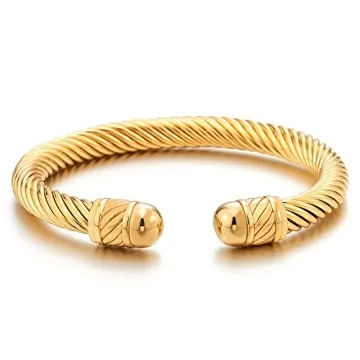 Show moreElevate your style with the COOLSTEELANDBEYOND Elastic Adjustable Stainless Steel Gold Color Twisted Wire Cuff Bangle Bracelet. Designed for both men and women, this bracelet combines elegance with durability, making it a perfect accessory for any outfit. Crafted from high-quality stainless steel with a polished gold finish, it features a unique twisted wire design that stands out. The elastic adjustable band ensures a comfortable fit for all wrist sizes, ranging from 17-20CM (6.69-7.87"). Weighing just 33.8g, it's lightweight yet sturdy. Each bracelet comes in a branded jewelry box, making it an ideal gift for loved ones.