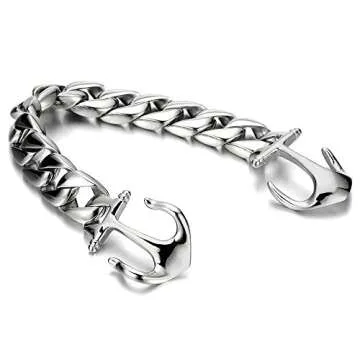 Show moreIntroducing the exquisite COOLSTEELANDBEYOND Stainless Steel Men's Marine Anchor Curb Chain Bangle Bracelet, a perfect blend of style, durability, and sophistication. Crafted with high-quality stainless steel, this bracelet boasts a polished finish that adds a touch of elegance to your everyday look. Measuring a comfortable 21CM (8.27 inches) in length and 1.5CM (0.59 inches) in width, it’s designed to make a statement without compromising on comfort. Whether you're sailing the high seas or navigating urban life, this fashionable piece is not just a bracelet—it's a reflection of your adventurous spirit and love for the sea.