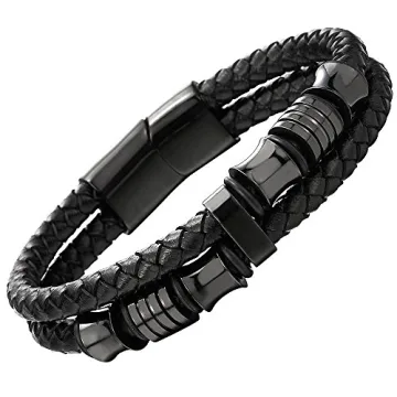 Show moreIntroducing the Mens Double-Row Black Braided Leather Bracelet Bangle Wristband with Black Stainless Steel Ornaments by COOLSTEELANDBEYOND. This elegant accessory combines style and durability, making it the perfect addition to any outfit. Crafted with premium black leather, this bracelet boasts a striking double-row design that adds a touch of sophistication to your look. The polished stainless steel ornaments not only enhance its visual appeal but also ensure longevity and resilience against everyday wear and tear. With its length of 21CM (approximately 8.27 inches) and a comfortable width of 1.6CM (approximately 0.63 inches), this bracelet fits snugly on the wrist, providing both comfort and style.