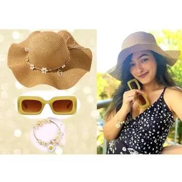 CoolZest Daisy Charm Accessory Bundle: Chic Hat, Sunglasses, & Bracelet