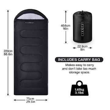 Introducing the Coolzon Lightweight Backpacking Sleeping Bag, the ultimate choice for adventurers of all ages! This versatile sleeping bag is designed for both cold weather kids and adults, making it ideal for year-round hiking and camping. With its astonishing combination of features, it promises to deliver warmth and comfort no matter where your journey takes you. The sleeping bag is not only lightweight but also exceptionally easy to carry, thanks to its cleverly designed...