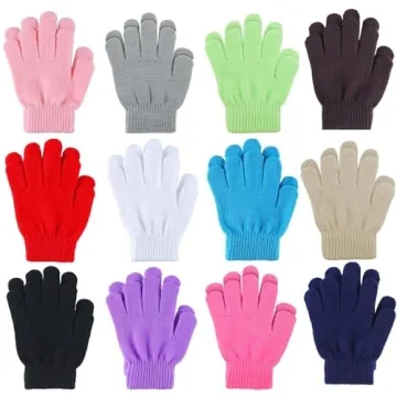 Cooraby 12 Pairs Kid's Winter Magic Gloves - Stretchy & Warm Knit Gloves