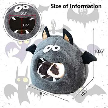 Show moreIntroducing the CooShou Guinea Pig Bed, a cozy and comfortable haven designed specifically for your beloved small pets. Measuring at 10.2 x 17.4 x 6.9 inches, with a cave gate diameter of 4 inches, this warm house is perfect for a variety of small animals, including chinchillas, hamsters, sugar gliders, squirrels, and guinea pigs. The charming little monster theme design adds a playful touch to your pet’s living space while ensuring they feel safe and secure in their own little retreat. Made from high-quality fleece, soft fabric, and elastic sponge, this hideout bed is not only cozy but also durable, providing multiple uses without fading or deforming, even after washing.